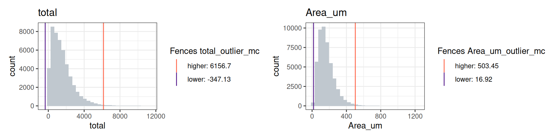 In the CosMx data, we identify 332 outliers for total counts and 339 outliers for area.