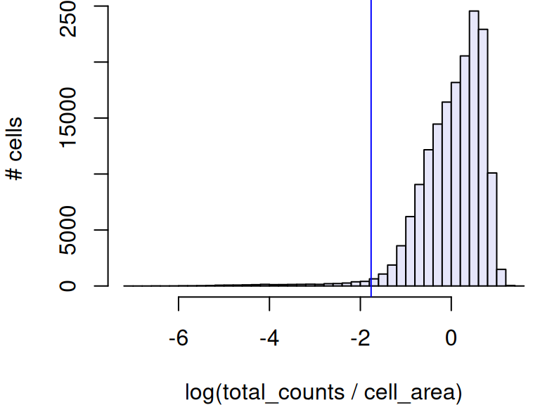 Depending on the platform and the application, such gene panels may be pan-tissue or targeting specific tissues or cell types. Moreover, they vary from a few hundreds (e.g., 313 in the first Xenium panel) to several thousands (e.g., the 5k Xenium panel or the 6k and 18k CosMx panels). Hence, unlike in sequencing-based platforms, we may not have enough ribosomal or mitochondrial transcripts to use for computing QC metrics. However, imaging-based platforms provide a set of negative probes that can be used to check for aspecific RNA captures.