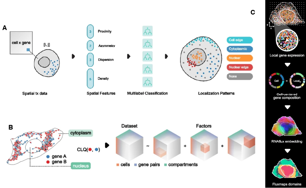 This approach focuses on transcript sub-cellular patterns or domains, which can be investigated further to gain biological insights (Walter, Stegle, and Velten 2023).