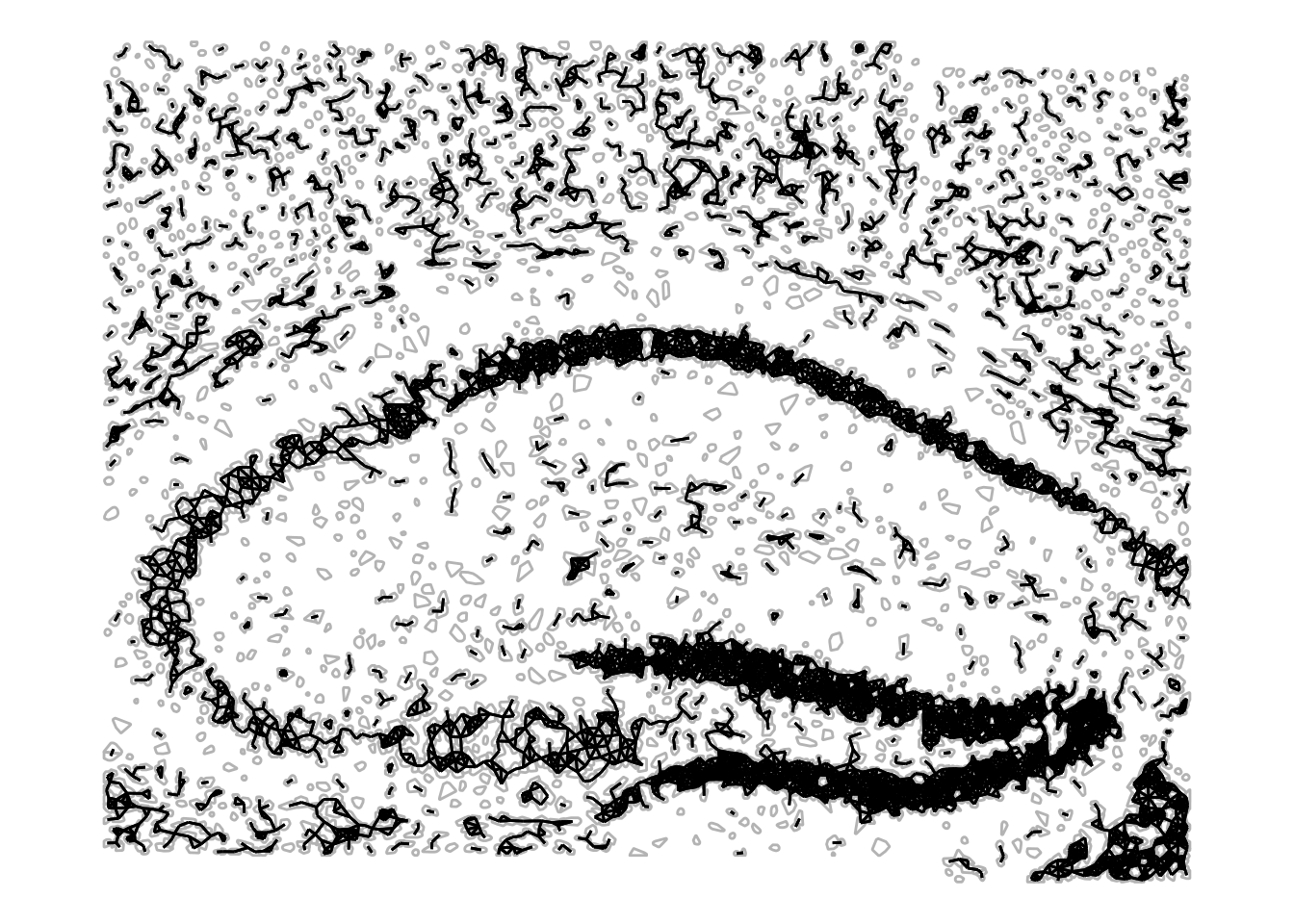 Note that an alternative approach uses the \(k\) nearest neighbors (kNN) method to define the neighborhood graph. Here, we prefer to use a distance-based approach, as it better captures the morphological structure of this tissue area.