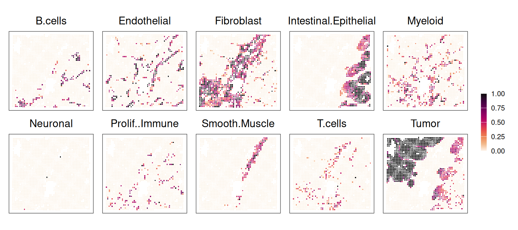 Cable, Dylan M., Evan Murray, Luli S. Zou, Aleksandrina Goeva, Evan Z. Macosko, Fei Chen, and Rafael A. Irizarry. 2022. “Robust Decomposition of Cell Type Mixtures in Spatial Transcriptomics.”Nature Biotechnology 40: 517–26. https://doi.org/10.1038/s41587-021-00830-w.